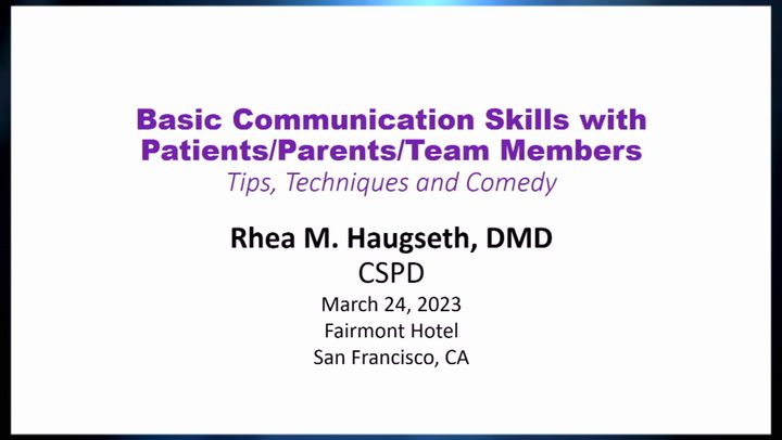 Key communication skills will be discussed, demonstrated, and developed with workshops. Techniques using verbal and non-verbal communications will be presented. Many times, these same techniques can be utilized to change the tones or attitudes in a potential communication conflict situation so that it does not escalate into a “fire” causing a very negative situation in your practice.