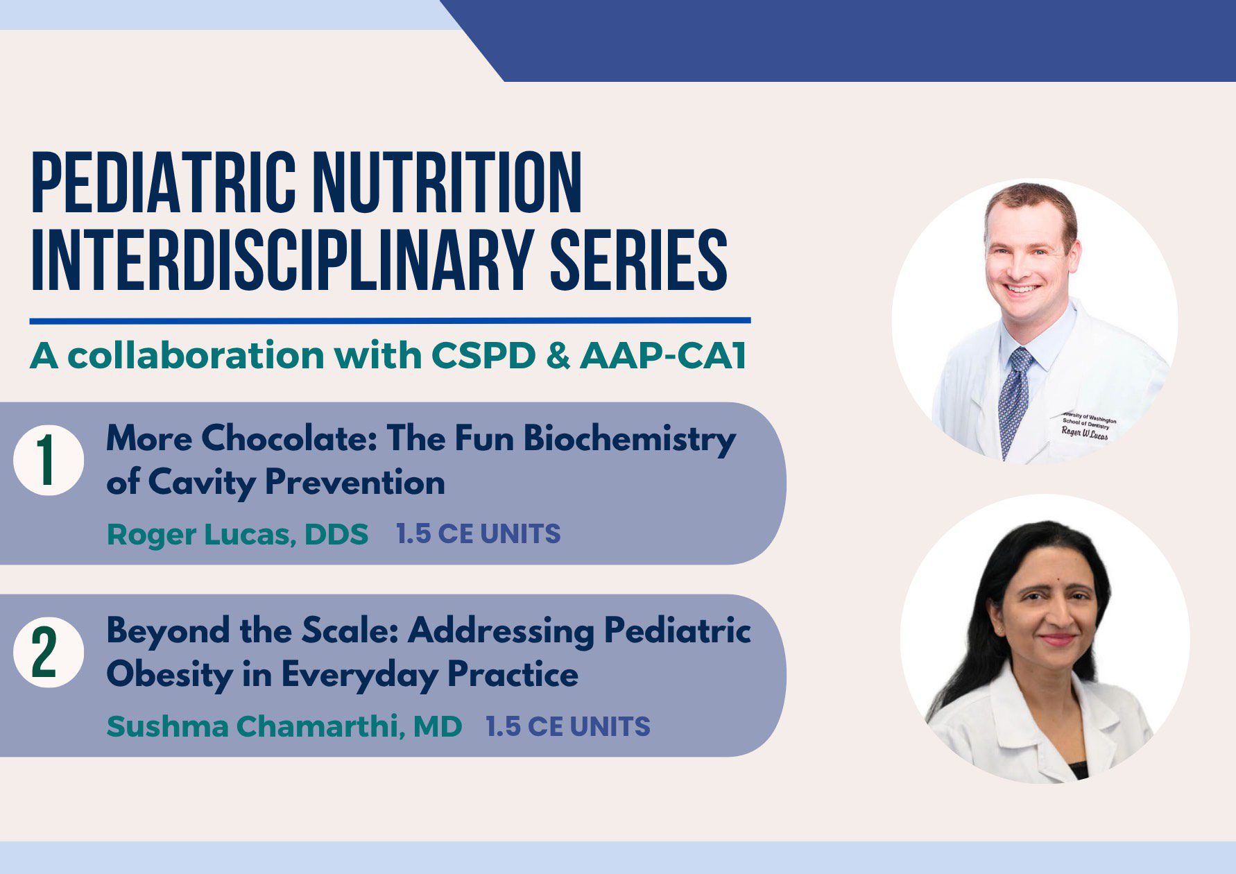 The California Society of Pediatric Dentistry (CSPD) is pleased to present a two-part continuing education webinar series focused on pediatric nutrition and its impact on oral and overall health. This series will provide pediatric dental professionals with valuable insights into nutrition-based prevention strategies, dietary guidance for young patients, and the connection between nutrition and dental outcomes.